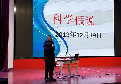 12月19日18點(diǎn),九年級(jí)全體同學(xué)聚集大報(bào)告廳,聆聽謝永中校長(zhǎng)“科學(xué)假說”的講座。 講座開場(chǎng),段興...