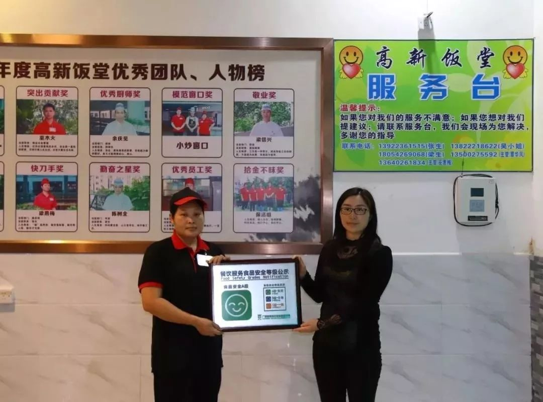 高新技校的兩所食堂已經(jīng)連續(xù)幾年被廣東省食品藥品監(jiān)督管理局評為“餐飲服務食品安全量化分級管理A級示范食堂”,學校所有的原料供應商都經(jīng)公開招標進行采購,保證食品安全和質量。從食材采購到加工、供餐進行全過程數(shù)字化監(jiān)控。
