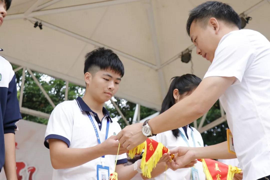 ▲學(xué)生科科長鐘維林與優(yōu)秀宿舍優(yōu)秀班級代表合影