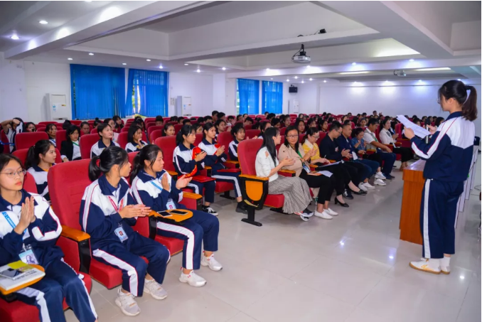 谷希歐公司董事長(zhǎng)袁應(yīng)權(quán)、總經(jīng)理陳彥榮、業(yè)務(wù)骨干雷麗紅,高新技校校長(zhǎng)助理孫建華、教務(wù)處處長(zhǎng)田春元、經(jīng)貿(mào)系主任向莎莎、商務(wù)外語專業(yè)負(fù)責(zé)人劉敏、17商務(wù)外語高技班主任陳靜儀、商務(wù)外語組全體教師出席了儀式,17商務(wù)外語高技班全體同學(xué)來到了現(xiàn)場(chǎng)。17商英高技班諸敏同學(xué)擔(dān)任了本次儀式的主持。
