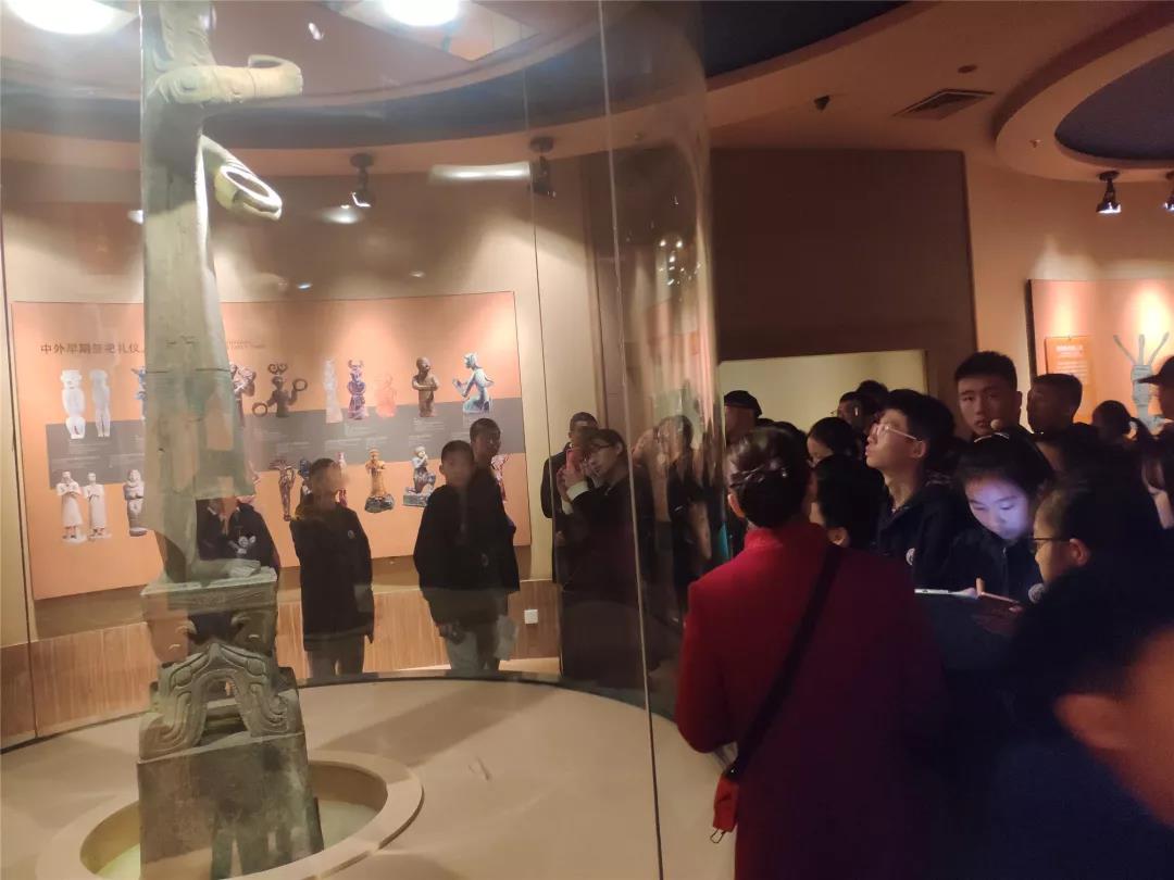 在解說員的講解下,同學(xué)們積極提問、認(rèn)真聆聽、仔細(xì)記錄。一件件珍貴文物展現(xiàn)在同學(xué)們眼前,讓人無不贊嘆古蜀人民勤勞智慧,尤其是在沒有發(fā)達(dá)的機械情況下,僅憑雙手打磨的玉石器物和那鎮(zhèn)館之寶青銅神樹!連隨行的老師都說,“連我也想研究研究古蜀文明啦!”