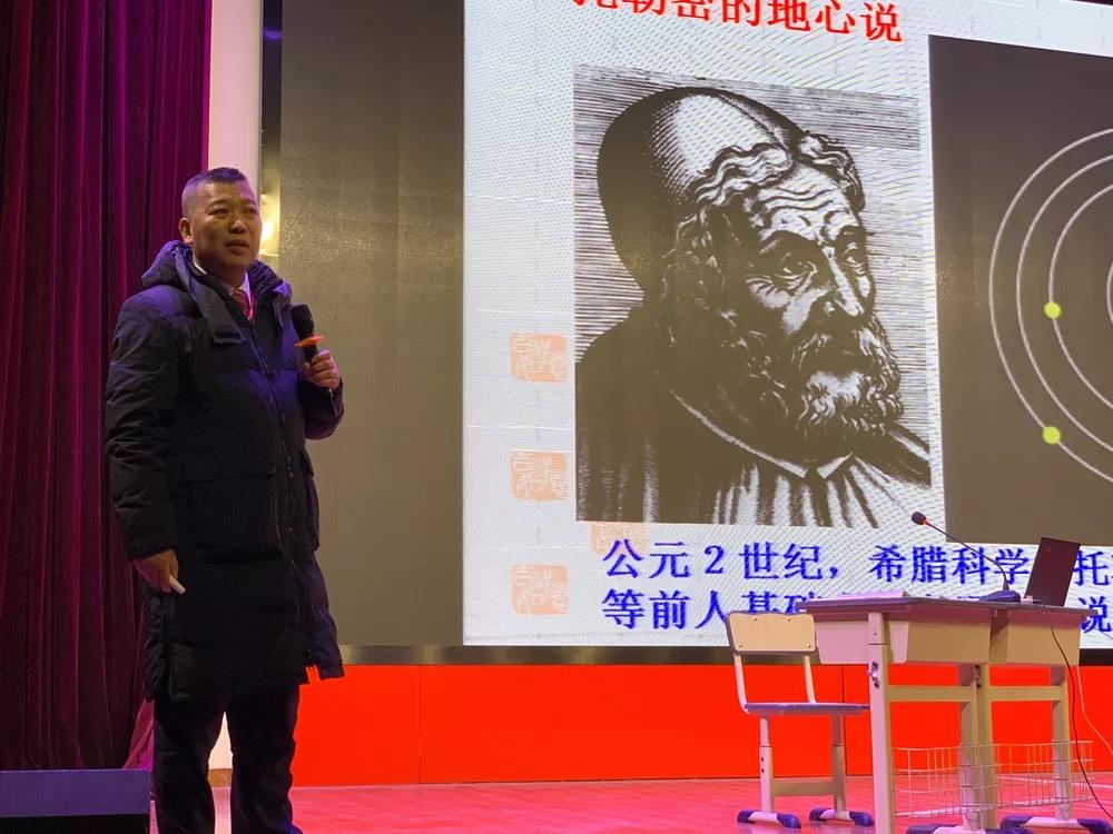 12月19日18點,九年級全體同學聚集大報告廳,聆聽謝永中校長“科學假說”的講座。