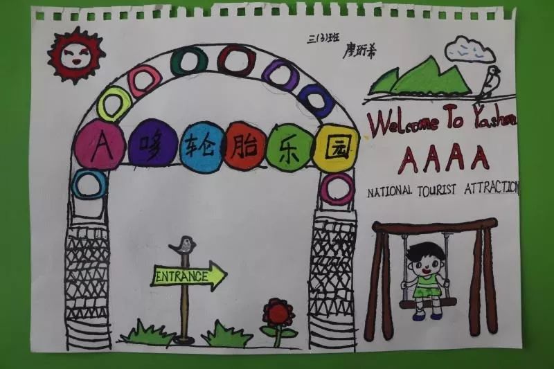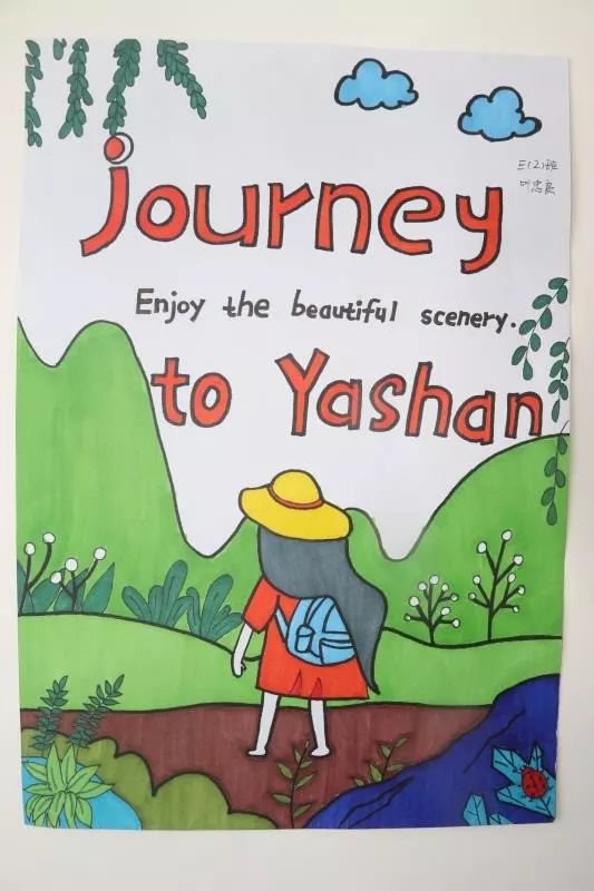 同樣的,為了準(zhǔn)備研學(xué)課程,孩子們還用英語(yǔ)認(rèn)真的做了丫山海報(bào)。讓我們來看看大余衡實(shí)三年級(jí)孩子們的作品吧!