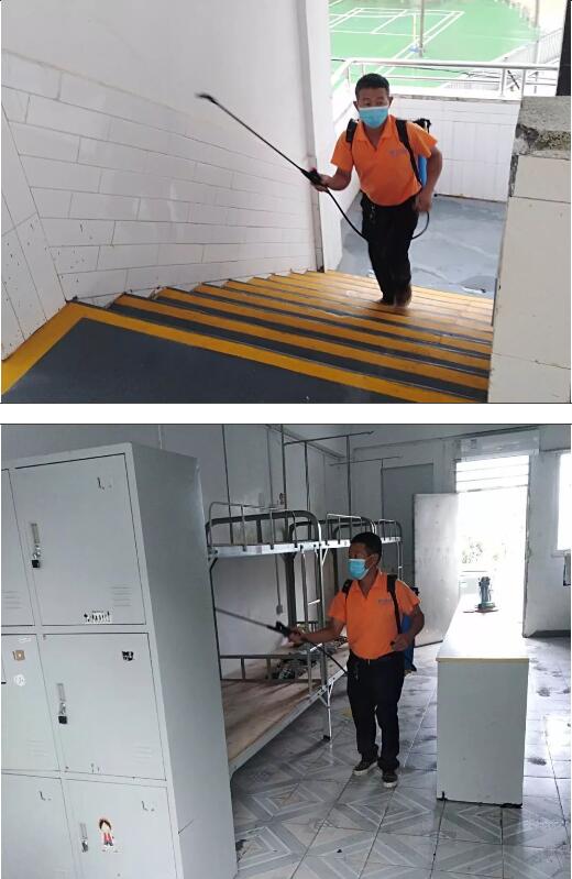 包括教學樓辦公室、課室、衛(wèi)生間、樓梯走廊,宿舍、圖書館、活動中心、形體室、實訓室的清潔消毒,每天通風換氣。