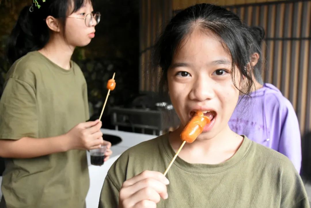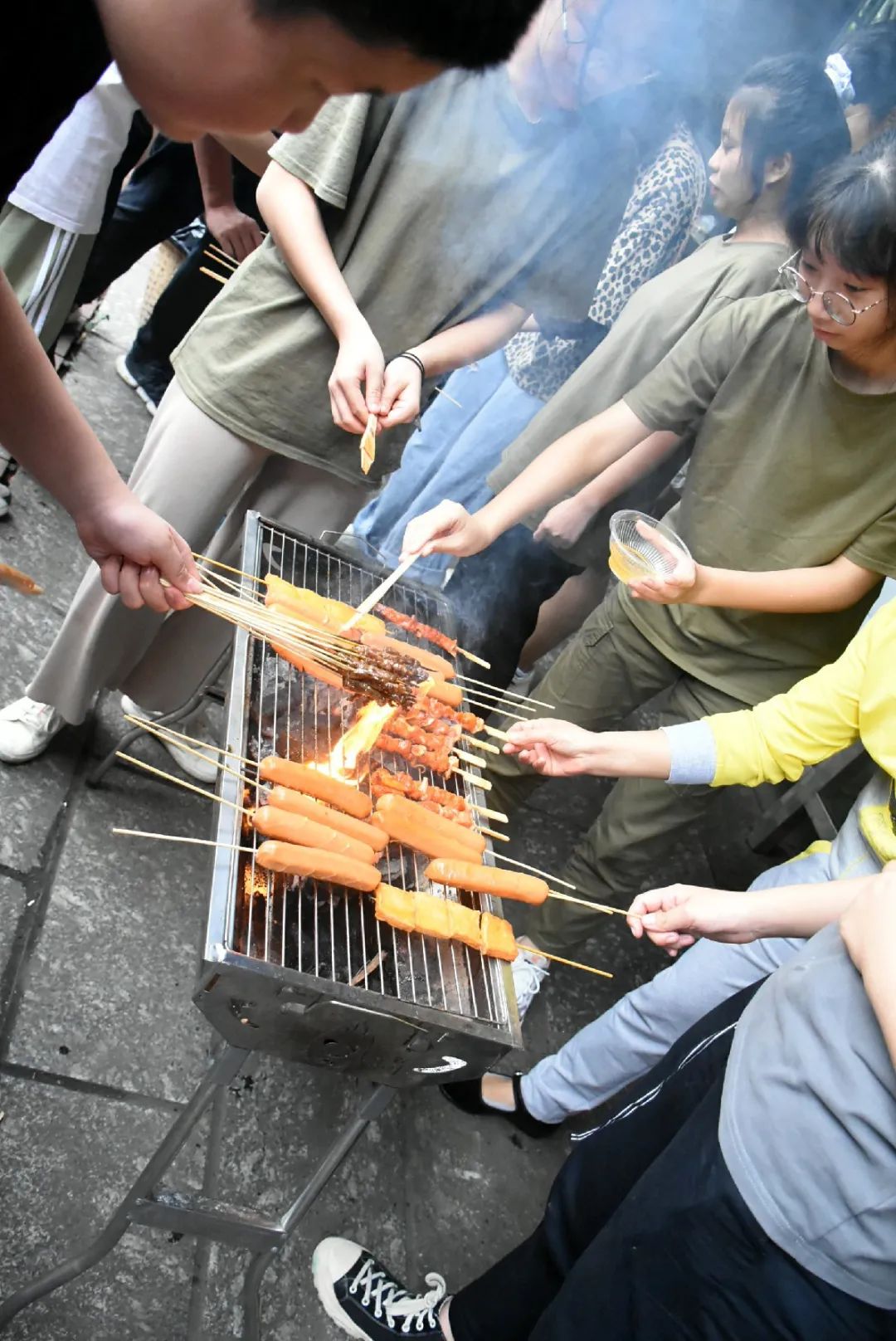 一串串肉被擺在烤架上,醬料被調(diào)配著,歡笑大鬧間,丫山下的我們是如此可愛,“大廚”翻著烤肉,平日不愛勞動(dòng)的“大哥”這時(shí)也變得勤奮可靠,一直為大家烤食物,是“大廚”中的中流砥柱,老師們也檫拳磨掌,在燒烤一線奮戰(zhàn)。