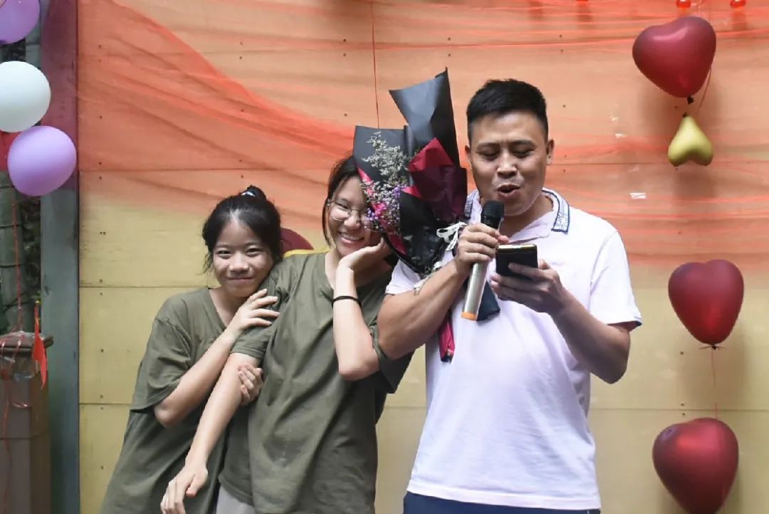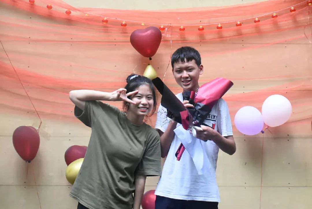 吃飽喝足便是節(jié)目表演環(huán)節(jié),老師的《日不落》活躍氣氛,現(xiàn)場(chǎng)成為打歌舞臺(tái),輕快酷炫的rap讓大家飽享耳福,搞笑有趣的廣西版《有何不可》讓大家捧腹大笑,熟悉的歌謠使得在底下的觀眾情不自禁地跟唱起來(lái),小伙伴們組成一個(gè)個(gè)小團(tuán)隊(duì),在舞臺(tái)散發(fā)著獨(dú)具特色的光芒,歌聲夾著尖叫聲,打call聲響徹丫山,送花合影讓我們更親密了,每個(gè)人的臉上都洋溢著笑容,負(fù)責(zé)接送我們的劉老師最后也按捺不住了,唱起了動(dòng)聽的經(jīng)典歌曲《濤聲依舊》和《橋邊姑娘》。