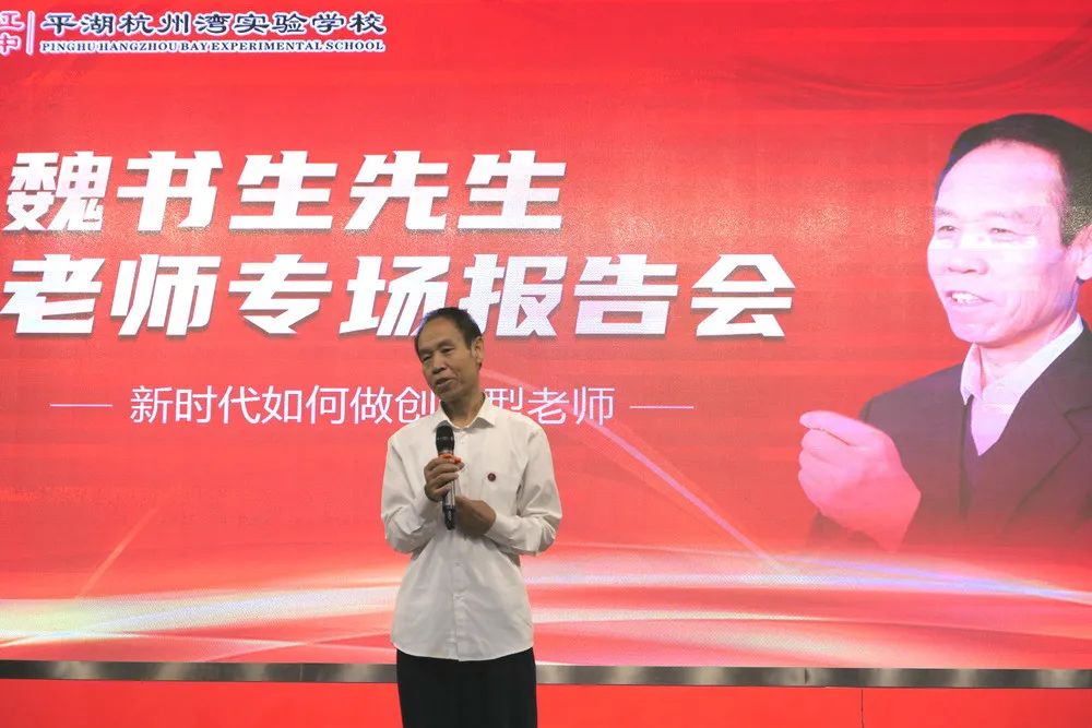 2020年9月15日上午,被喻為“穿西裝的孔子”的當(dāng)代教育家魏書生來我校為全體教職工進(jìn)行以“新時代如何做創(chuàng)新型老師”為主題的專場思想報告會。嘉興教育學(xué)院處長沈俊松先生,嘉興港區(qū)社發(fā)局文教衛(wèi)副書記顧巧明先生,平湖實(shí)驗(yàn)小學(xué)教育集團(tuán)黨委書記、總校長芮金良先生,乍浦高級中學(xué)黨總支書記、校長曹躍平先生,平湖實(shí)驗(yàn)小學(xué)教育集團(tuán)副總校長、毓秀小學(xué)校長湯麗英女士,平湖杭州灣實(shí)驗(yàn)學(xué)校理事長肖家興博士,北大親子教育專家孫一鳴老師,海寧市南苑中學(xué)、嘉興市城南中學(xué)、嘉興市運(yùn)河實(shí)驗(yàn)學(xué)校、嘉興市城南小學(xué)等學(xué)校,以及平湖市、港區(qū)兄弟學(xué)校的老師們紛紛慕名而來,聆聽長者教誨。