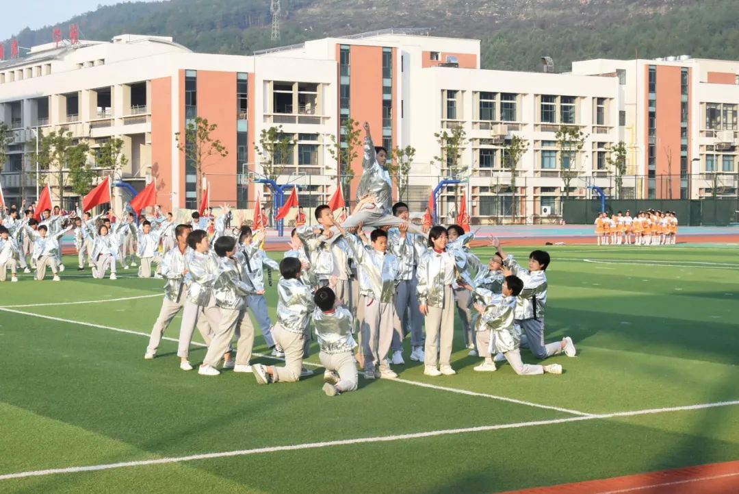 金燦燦的花球如同太陽的光輝灑滿操場,