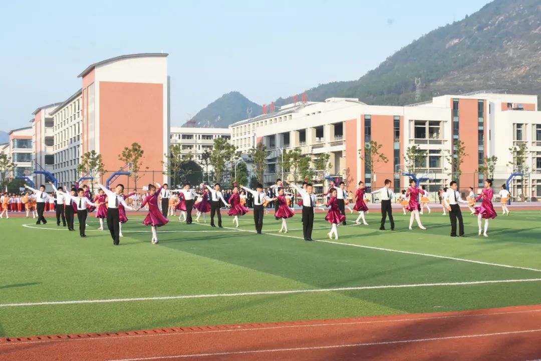 足球場的正中央,中學(xué)部的健兒們組成整齊劃一的方陣,帶著矯健的身姿和瀟灑靈動的舞步拉開了大余衡水實(shí)驗(yàn)學(xué)校第二屆體育節(jié)的序幕。衡實(shí)的孩子跟隨著歡樂的節(jié)拍,盡情的展現(xiàn)著屬于他們的熱情和動感。