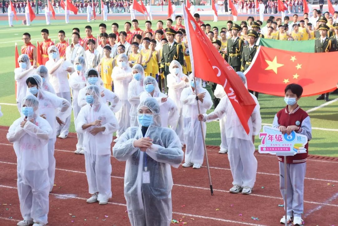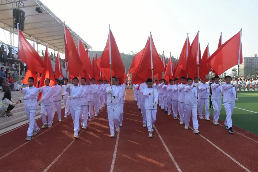 各班級代表隊(duì)也絲毫不輸陣!他們踏著運(yùn)動員進(jìn)行曲,賣著鏗鏘有力的步伐,以飽滿的精神狀態(tài),列隊(duì)走過主席臺。