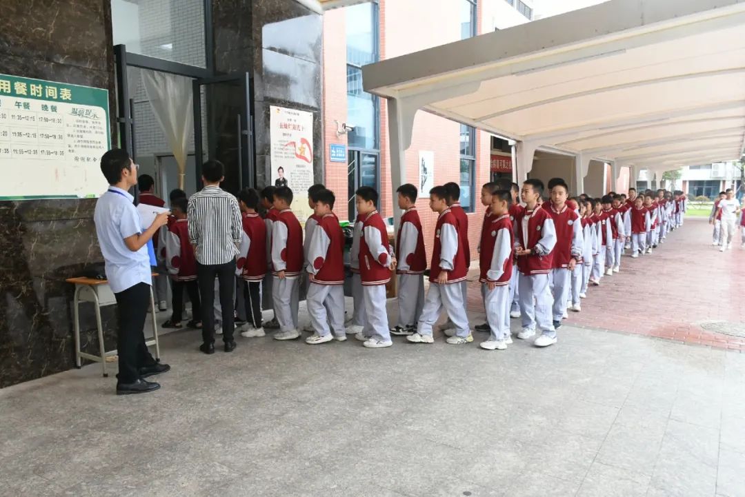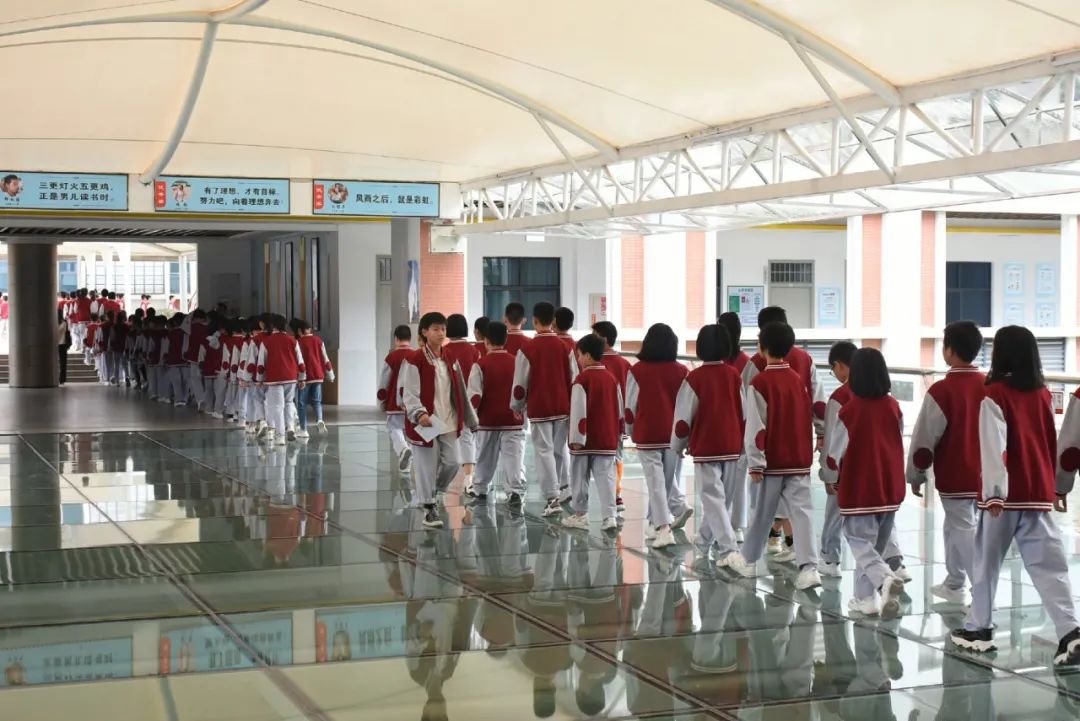 每到時(shí)間,學(xué)生自覺(jué)排成整齊的隊(duì)伍,按照規(guī)定的路線向餐廳出發(fā)!這整齊的路隊(duì)就是他們的招牌,這有力的步伐就是他們的精神面貌!