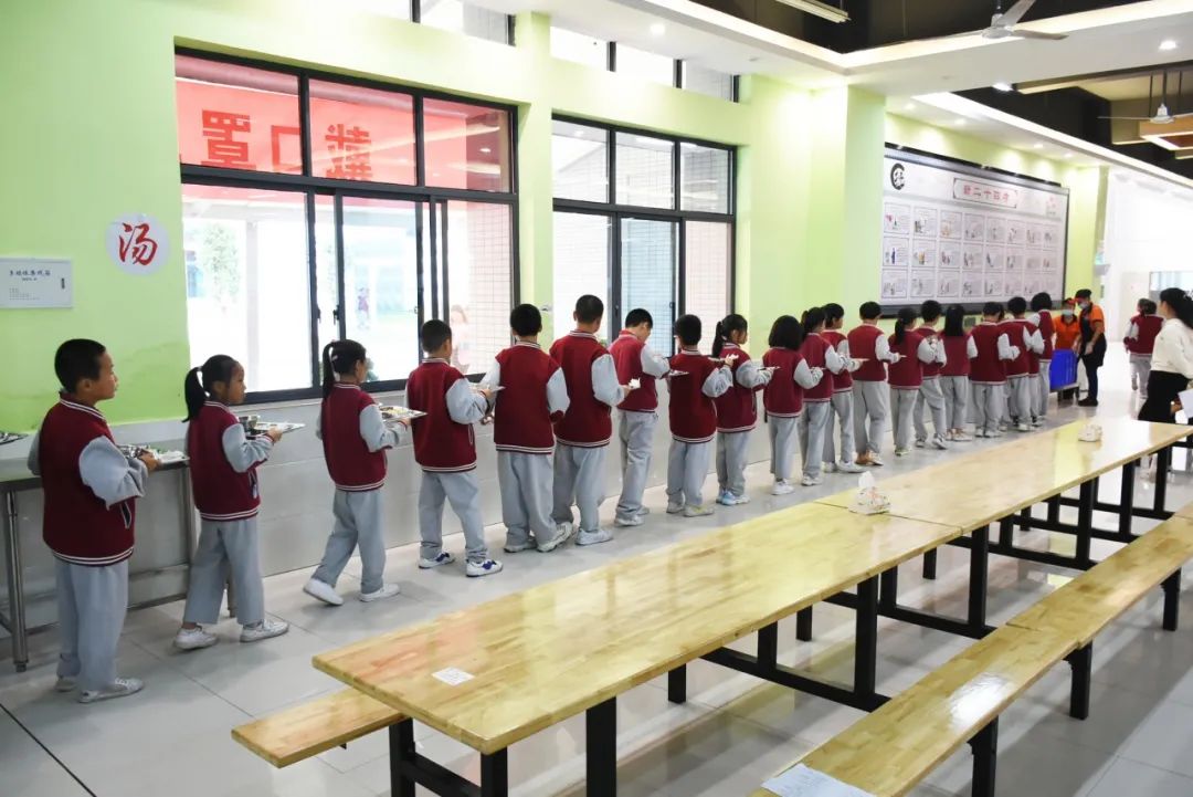 下課鈴響,學(xué)生安靜有序地排隊(duì)洗手,保持個(gè)人衛(wèi)生很重要。整隊(duì)遵循“快、靜、齊”三個(gè)要求,有序地向餐廳走去!