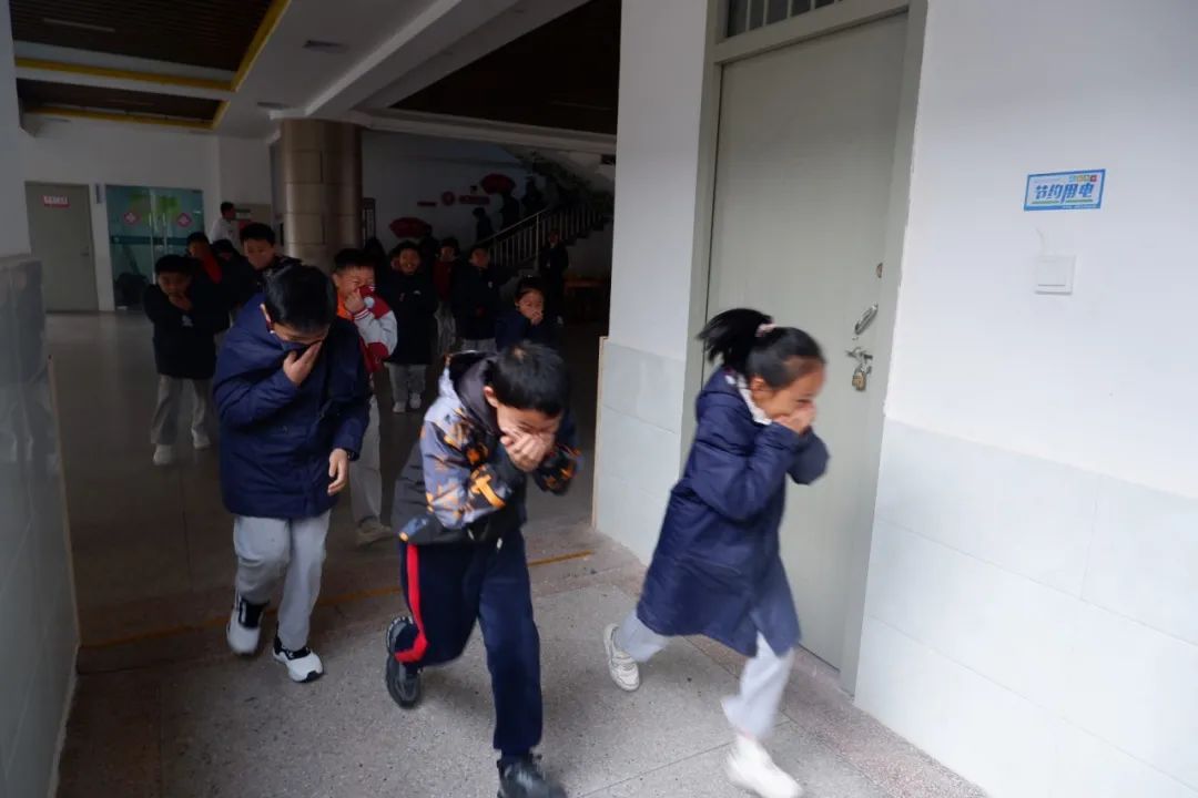 上午十點整,隨著警報聲的響起,消防演練正式開始。在領(lǐng)導(dǎo)的指揮下,各工作小組按照預(yù)案迅速到達指定位置,開始引導(dǎo)學(xué)生用濕毛巾捂住口鼻,從教室迅速撤離到操場集合。隨后,各班清點人數(shù),逐級匯報,確保所有學(xué)生都安全撤離到了操場。