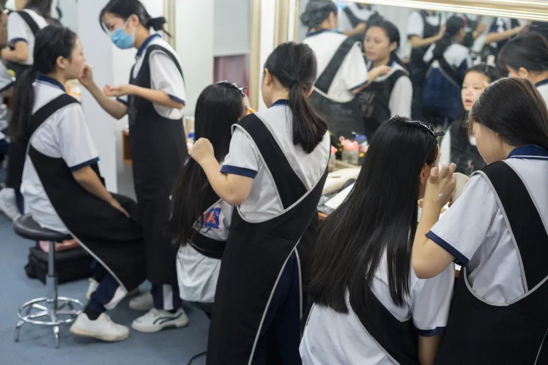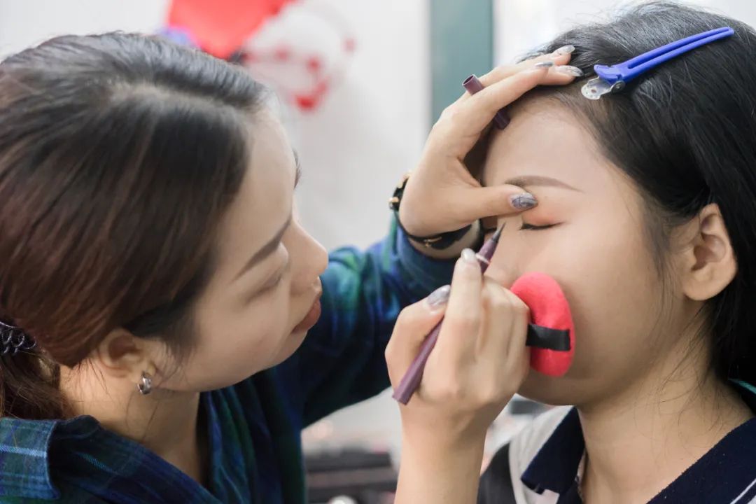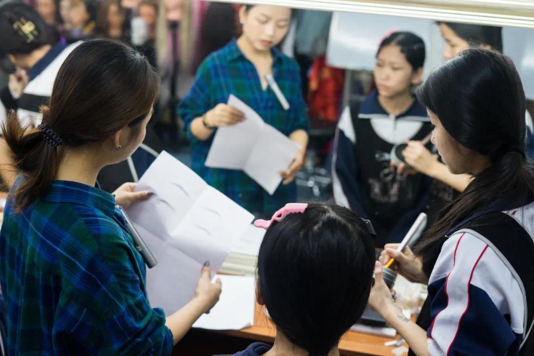 “本學(xué)期19級的化妝與造型實(shí)訓(xùn)由我授課,根據(jù)不同的應(yīng)用場合,我們會學(xué)習(xí)到晚宴妝、主持人妝、新娘妝,職場妝,還有一些特殊妝容如影視劇里面的老人妝、話劇活動里面的創(chuàng)意妝等等,以及對應(yīng)的造型設(shè)計(jì)。”