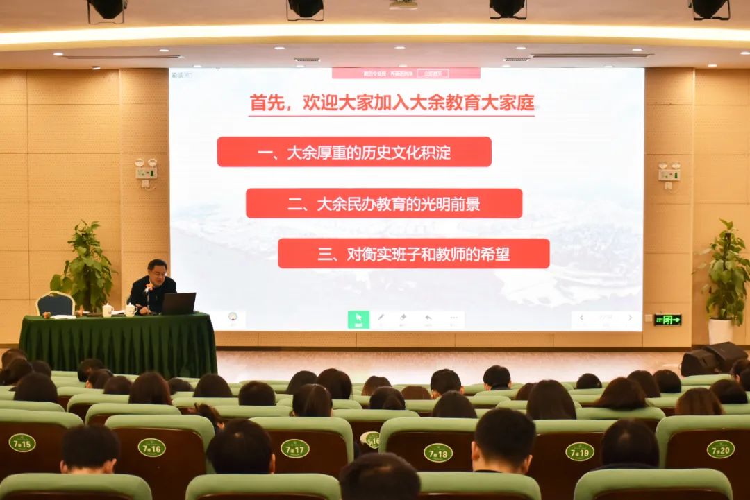 冬日微寒,層林盡染。12月28日晚上,大余衡水實(shí)驗(yàn)學(xué)校報(bào)告廳內(nèi)不時(shí)爆發(fā)出熱烈的掌聲,一場(chǎng)由大余縣教科體局黨委書記、局長(zhǎng)曾凡偉主講,主題為《立足教育熱土,厚植家國(guó)情懷》的講座正在如火如荼地進(jìn)行。講座由王躍平校長(zhǎng)主持,大余衡水實(shí)驗(yàn)學(xué)校全體教師到場(chǎng)聆聽。