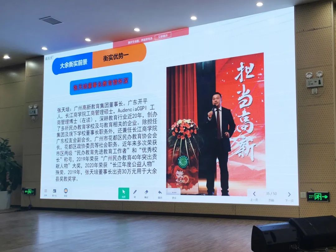 接著,曾局長(zhǎng)以近三年大余教育的輝煌成績(jī)?yōu)槔?,?jiǎn)析大余民辦教育的光明前景。曾局長(zhǎng)指出,大力發(fā)展民辦教育是十分重要的,民辦教育不僅有利于積蓄社會(huì)教育資源,滿足人民群眾對(duì)優(yōu)質(zhì)教育的強(qiáng)烈渴望,且機(jī)制靈活、適應(yīng)市場(chǎng)、講求實(shí)效,能夠有效地促進(jìn)教育供給的多樣化。更重要的是,大余衡實(shí)有著強(qiáng)大的教育實(shí)力背景,具有七大獨(dú)有的優(yōu)勢(shì):