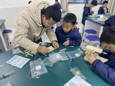 在大課堂開課之前,柴老師先確定了所授課的學(xué)段為三、四年級,又挑選了符合這一學(xué)段學(xué)生思維發(fā)展的小制作。做好一切準(zhǔn)備工作后,“柴小小科技課”正式開課了,但在剛開始上課的時(shí)候,柴老師還在擔(dān)心學(xué)生不喜歡,因?yàn)檫@節(jié)課只是鍛煉學(xué)生的組裝、拼接能力,但出乎意料的是,學(xué)生在大課堂上表現(xiàn)出了極大的熱情。